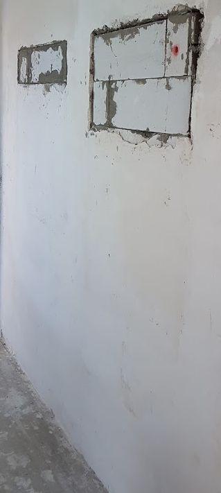 Und hier die bereits teilverputzte Seite im Hausflur: