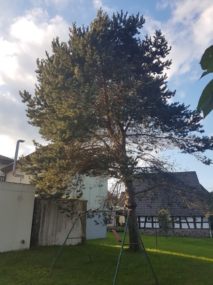 Leider - so leid es mir tut, muss wohl ein Baum weichen... er hängt zur Garage über und verdreckt erheblich das Garagendach und den ganzen Rasen, dass ein Aufenthalt und Rasenmähen keine Freude machen...
