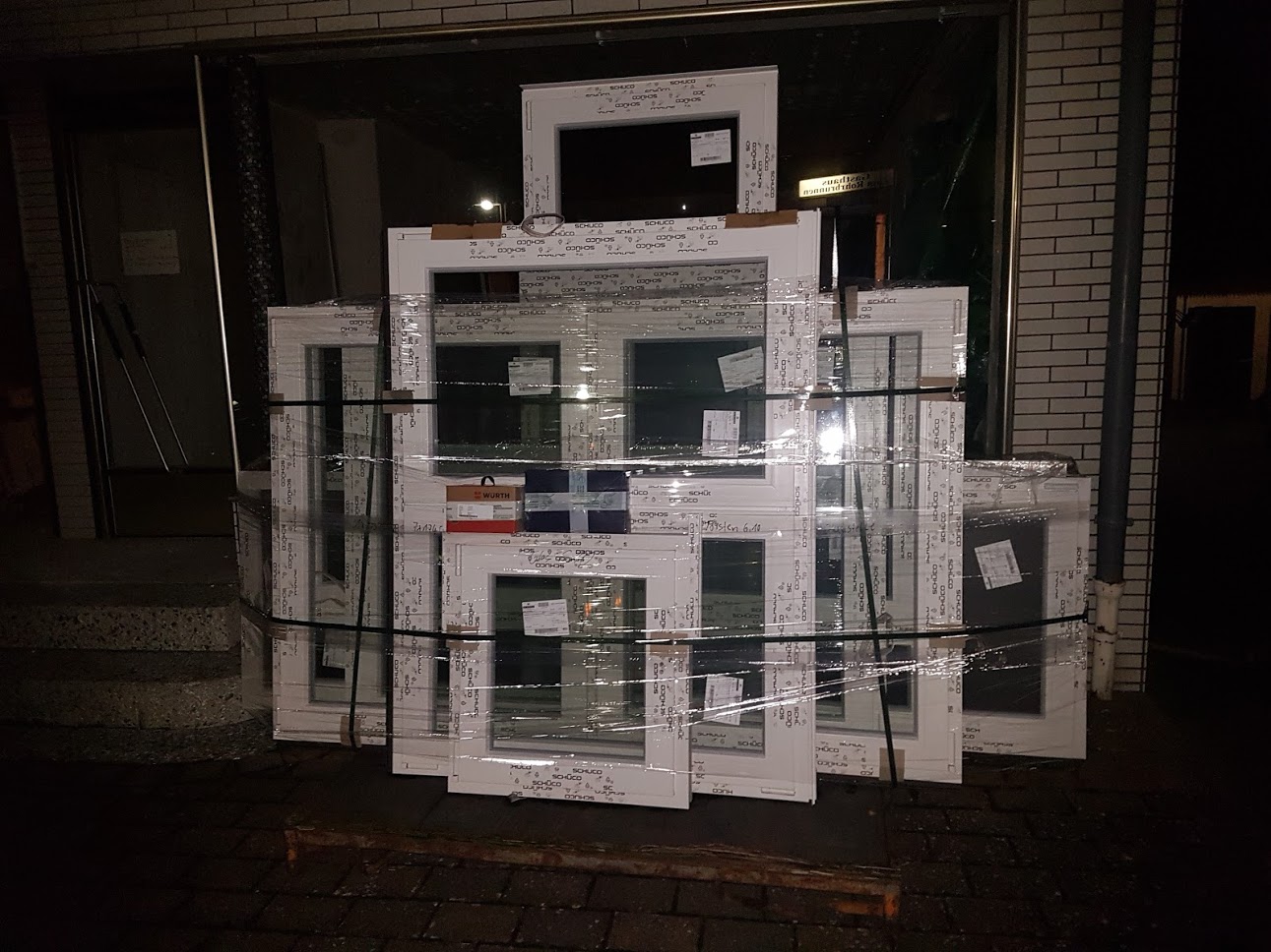 Spät Abends kam dann gleich noch der LKW mit den neuen Fenstern. Riesiges Gespann, super netter Fahrer. Beeindruckend, wenn man erfährt, dass er die ganze Woche ununterbrochen mit seinem LKW eine Tour von Ost- über West- nach Norddeutschland und zurück machen und dabei in seiner Kabine schläft. Dabei war er super gut gelaunt und hat betont, dass er da alles hat, was man so braucht!