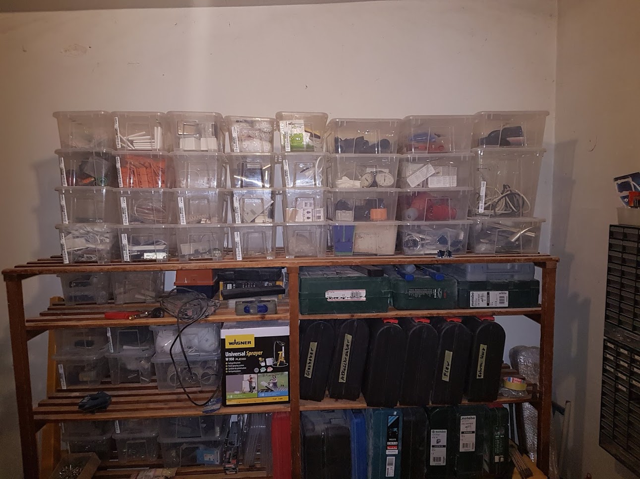 Ich habe mir die Mühe gemacht, meine beiden Lagerräume für Material, Geräte und Werkzeug neu zu strukturieren und zu ordnen. Es ist schlimm, im akuten Bau-Gefecht nicht gleich das zu finden, was man benötigt...