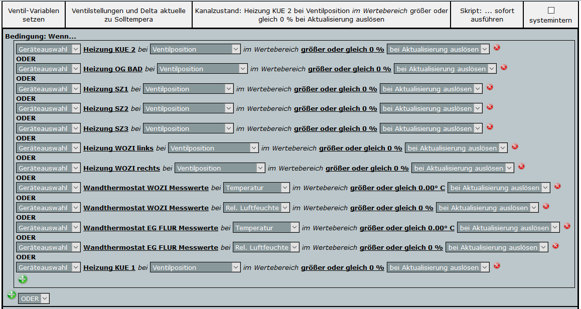Mit dem im Folgenden dargestellten Programm können die Zustände von Heizkörperthermostaten oder Stellmotoren (z. B. die Ventilöffnung) in Systemvariable geschrieben werden, die dann per Kanalzuordnung mit den jeweiligen Geräten als Zusatzinformation angezeigt werden.